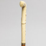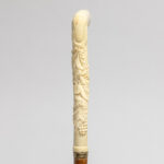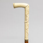 19th Cent. European cane for ladies with a total height of 90,5 cm and ‘L’-shaped grip in ivory with reliefs of leaves and berries, attached with a ring in metal