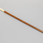 Negentiende eeuwse Europese wandelstok voor dames met een totale hoogte van 90,5 cm met een fijne ‘L’-vormige greep in ivoor versierd met een bas-reliëf van bladeren en bessen – met bevestigingsring in metaal