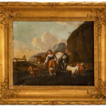 Philipp Peter Roos 17/18th Cent. oil on canvas with shepherdess with animals – with certificate