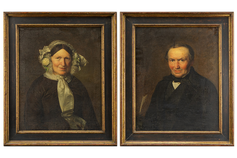 pendant of two 19th Cent. Belgian oil on canvas with family portraits – signed Philippe De Witte and dated 1866