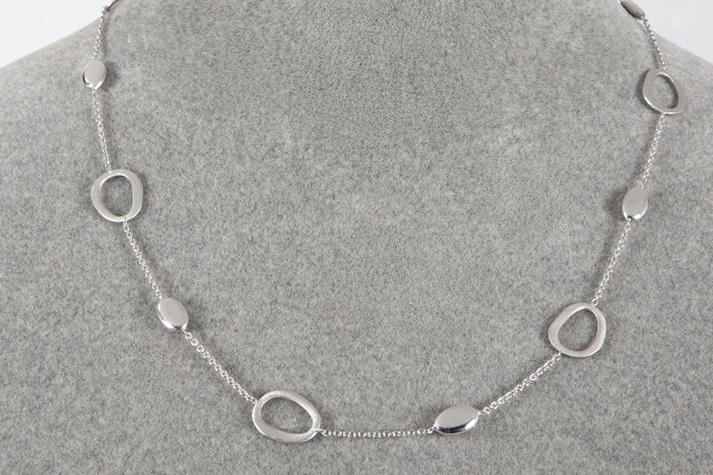 Collier in witgoud (18 karaat) met open en gesloten ellipsvormen die elkaar afwisselen – gewicht : 7,7 gram