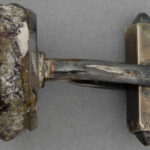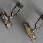 CHALE ADOLPHE (1928 – 2025) paar manchetteknopen in zilver bezet met een plaket ruwe robijn – met originele, ‘Chale’ gemerkte doos