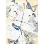 NEYT PARCIFAL (° Gent 1960) werk in gemengde techniek met collage op doek : “Compositie” – 74 x 54 gemonogrammeerd