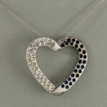 heart-shaped pendant in white gold (18 carat) with ca 1 carat of sapphires and ca 0,70 carat of high quality brilliant cut diamonds – with a chain in white gold (18 carat)