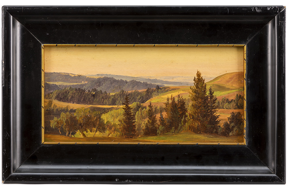 19th Cent. oil on board with a Study of a landscape attributed to Gustav Friedrich Papperitz with on the back a stamp with “Nachlass G.F. Papperitz – G. Schülz” (maybe from the Succession)