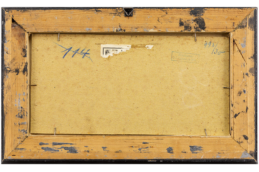 PAPPERITZ GUSTAV FRIEDRICH (1813 – 1861) (DU) olie op board met een landschapsstudie – 16,5 x 32 toegeschreven aan met op verso een stempel met “Nachlass G.F. Papperitz – G. Schülz” (mogelijk van de successie)