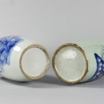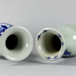 two ‘antique’ Chinese vases in porcelain with blue-white decor on celadon glaze