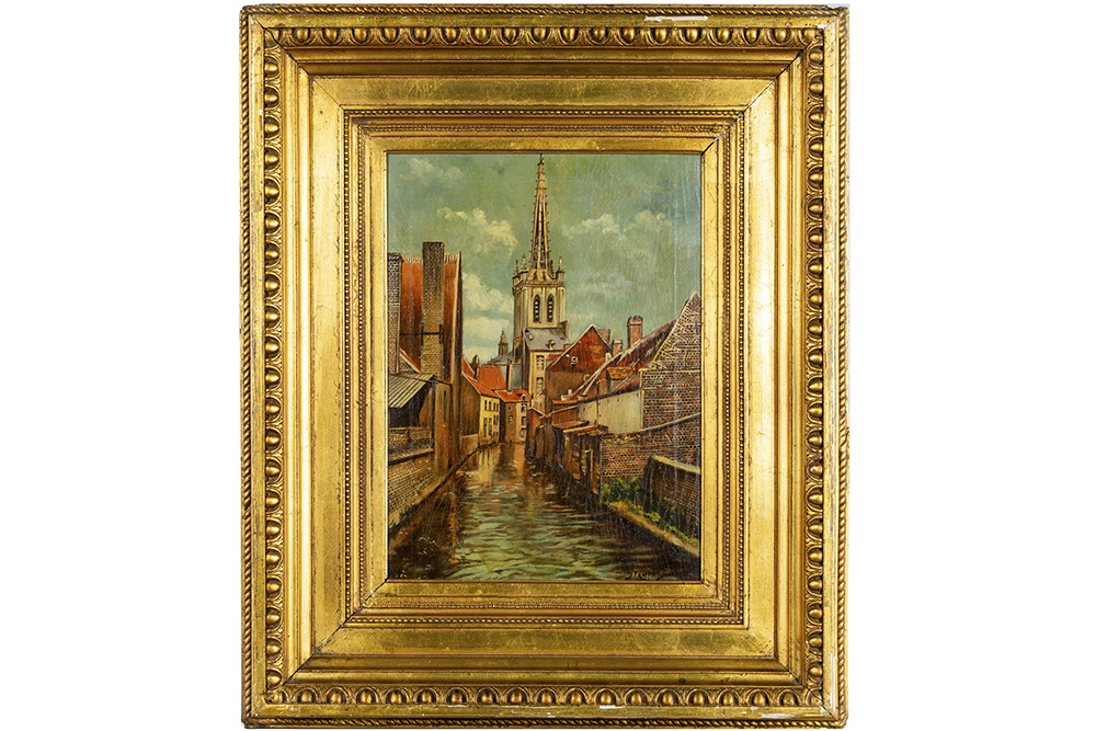 TEMPELS DANIEL (20° EEUW) olieverfschilderij op doek : “Stadszicht” – 40 x 30 getekend en gedateerd 1941