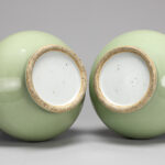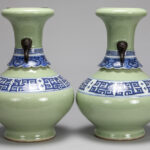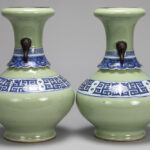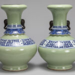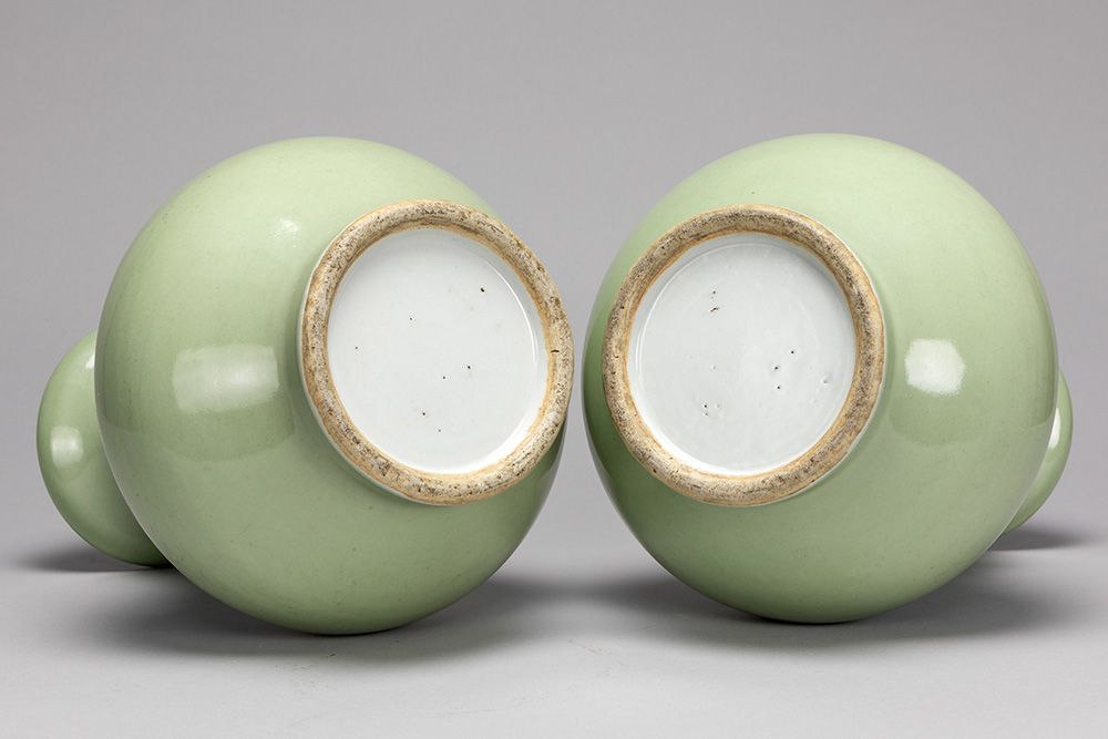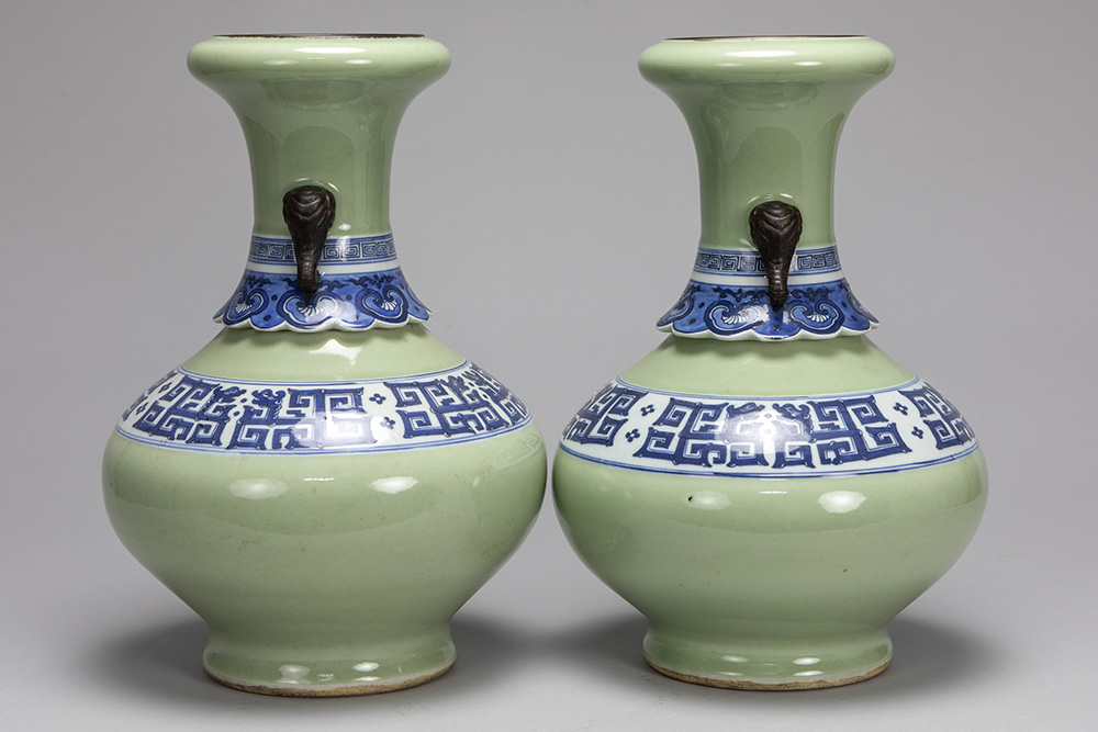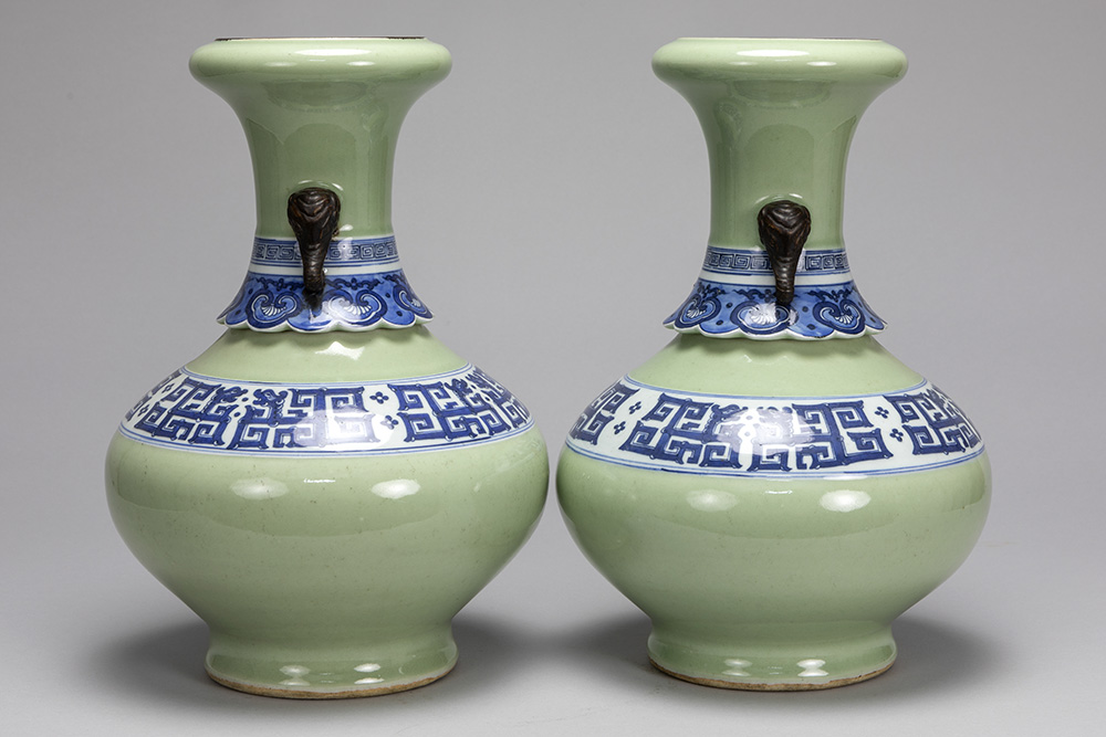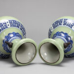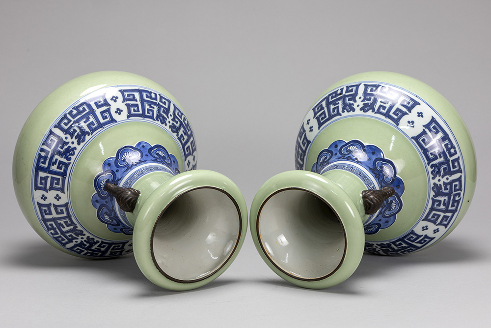 pair of Chinese vases porcelain with light green celadon glaze and blue-white decors