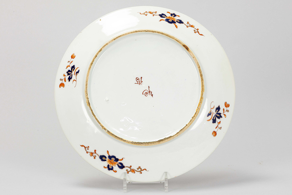 antique Japanese dish in marked porcelain with a polychrome decor with courtly scene
