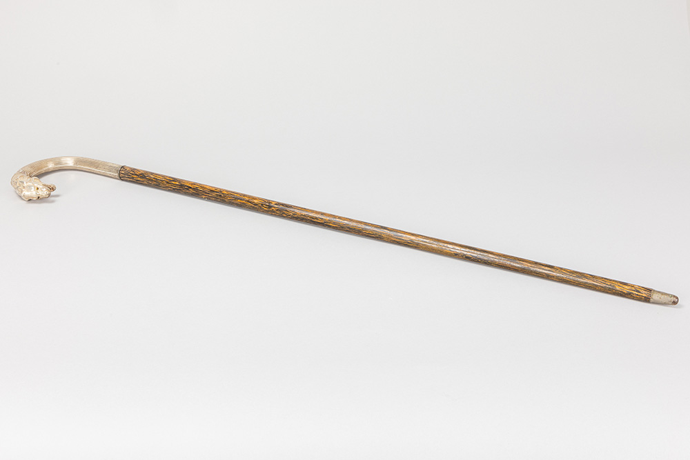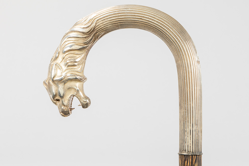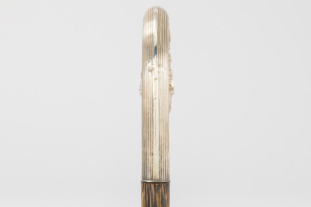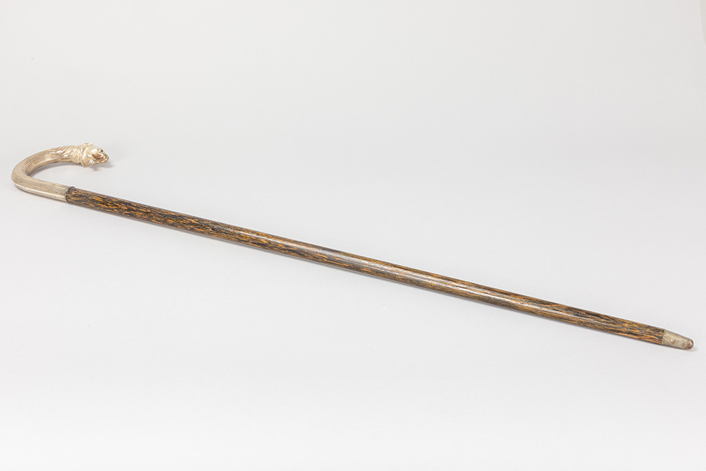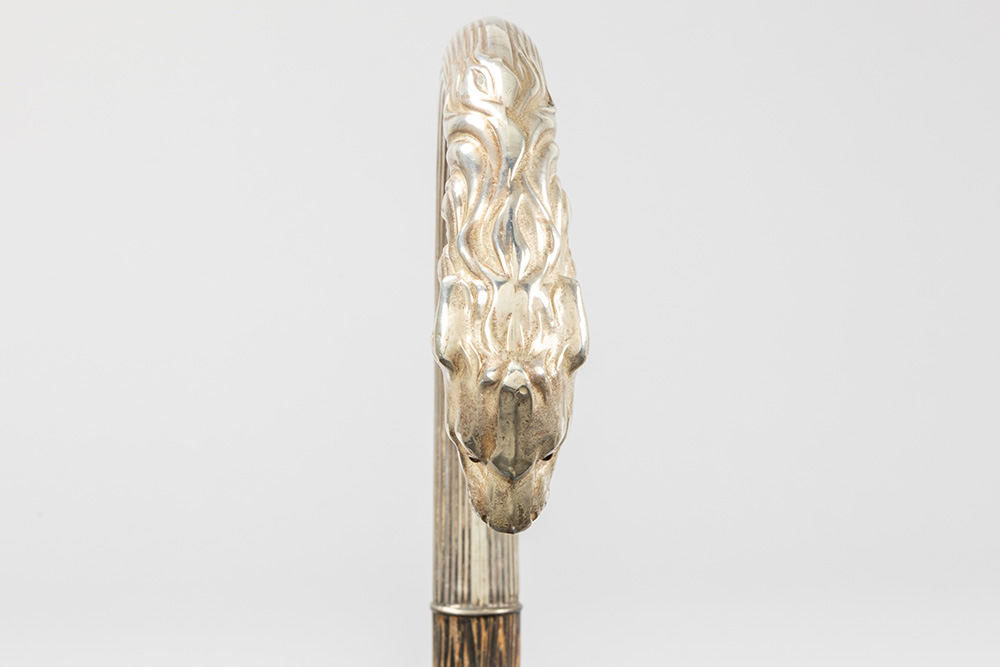 antique German walking stick in coromandel with a silver grip (lion’s head)