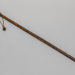 Laat negentiende eeuwse Europese wandelstok met een totale hoogte van 93,5 cm met Japanse greep in ivoor versierd met een aapje zittend op een struik met vruchten  –  met bevestigingsring in koper