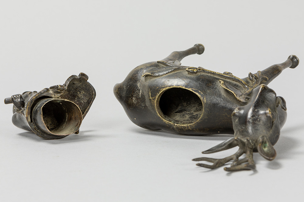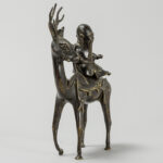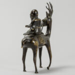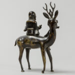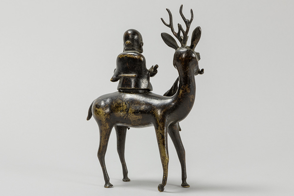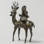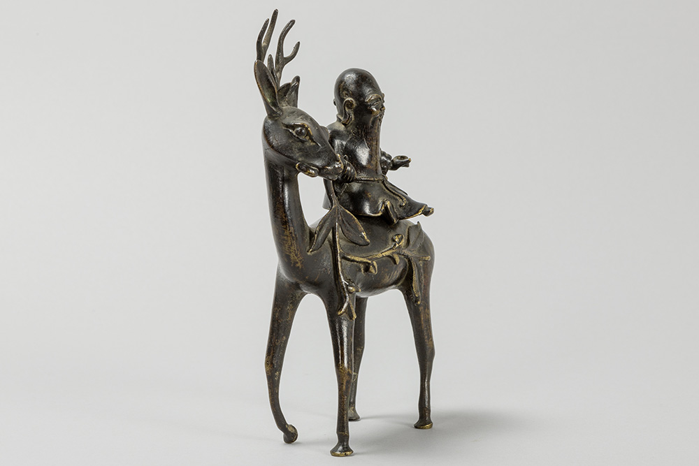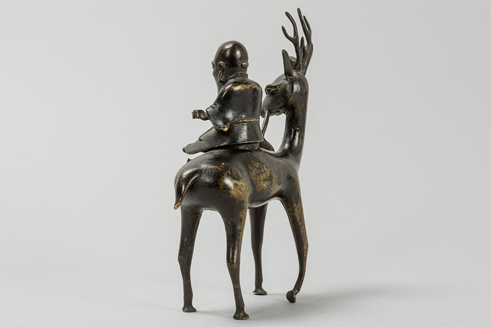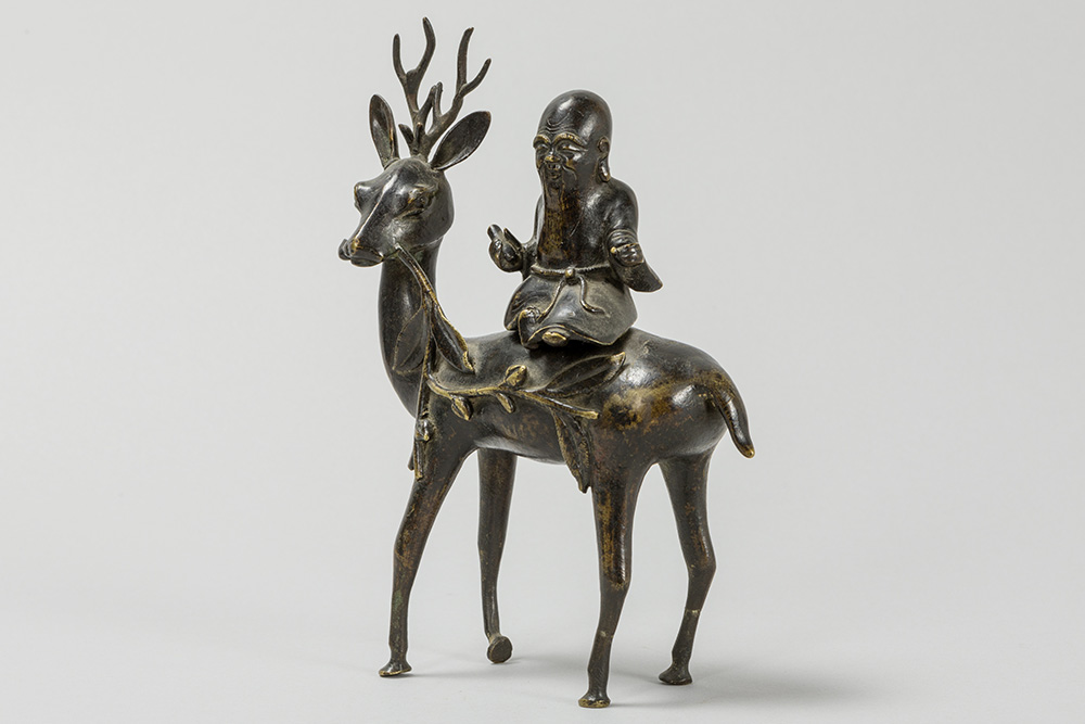 small antique Chinese “Lao Tse on a deer” sculpture in bronze