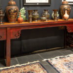 Goede antieke Chinese altaartafel uit de Qing-periode in nog deels gelakt hout en met gesculpteerde wangenpoten – 95 x 277 x 52 cm