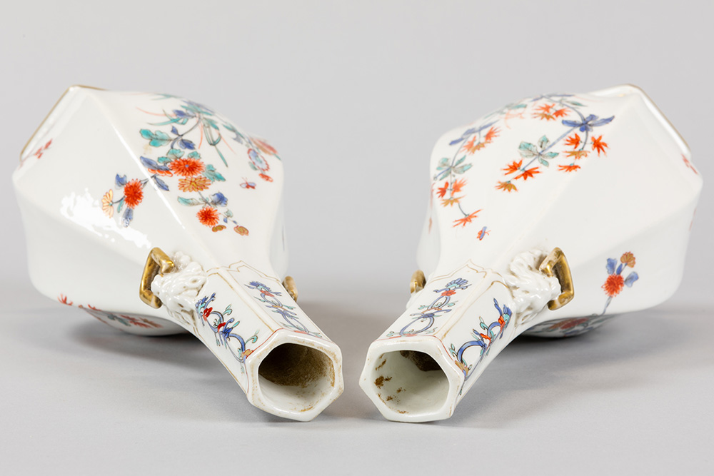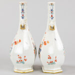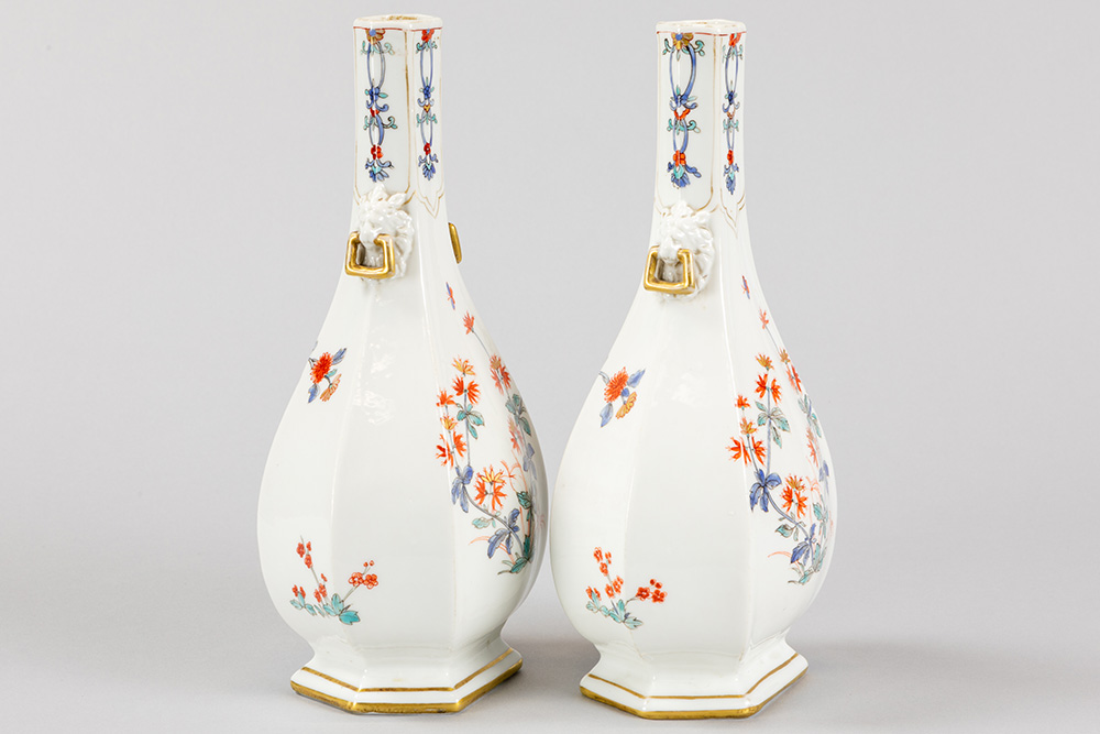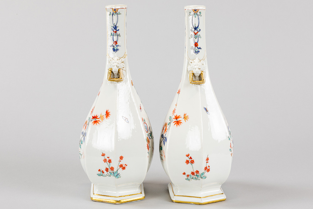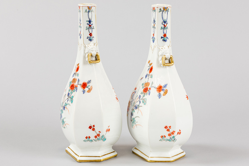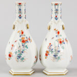 pair of antique, probably French vases in porcelain with a floral polychrome decor