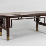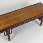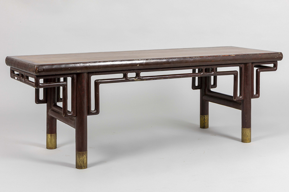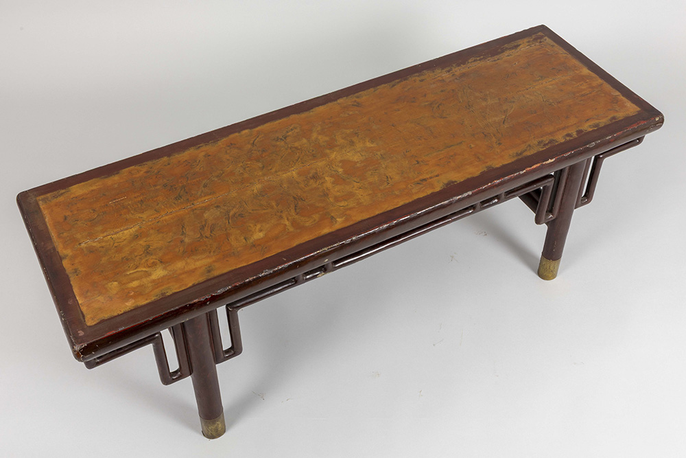 Antieke Chinese ceremoniële tafel (41 x 117 x 38,5 cm) met typisch, vrij sober design in een exotische houtsoort