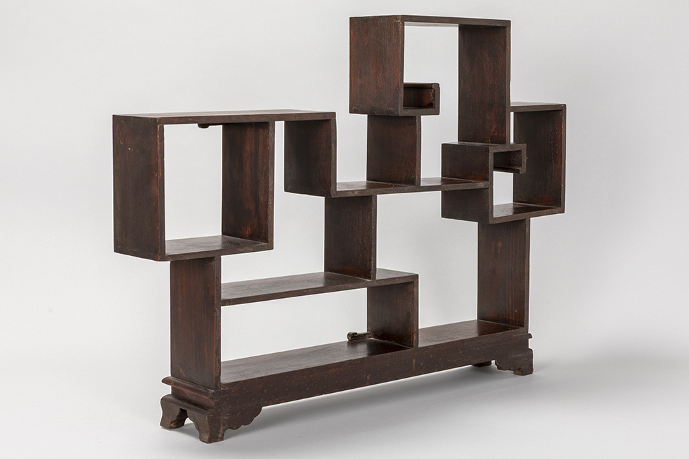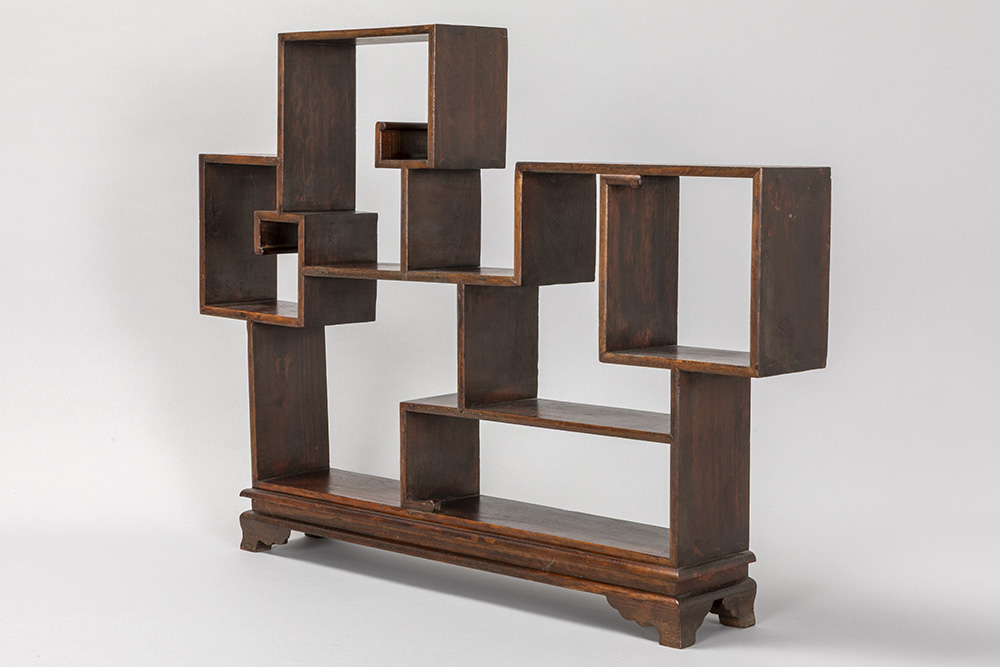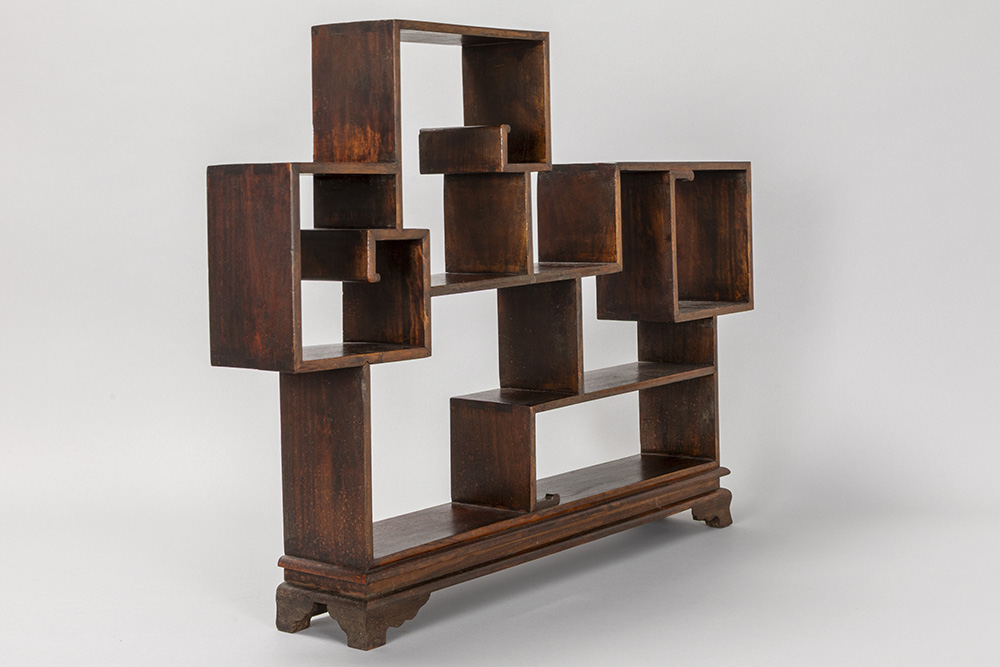 Chinees netsuké-meubeltje met zes compartimenten in fruithout – 47 x 64 x 10 cm