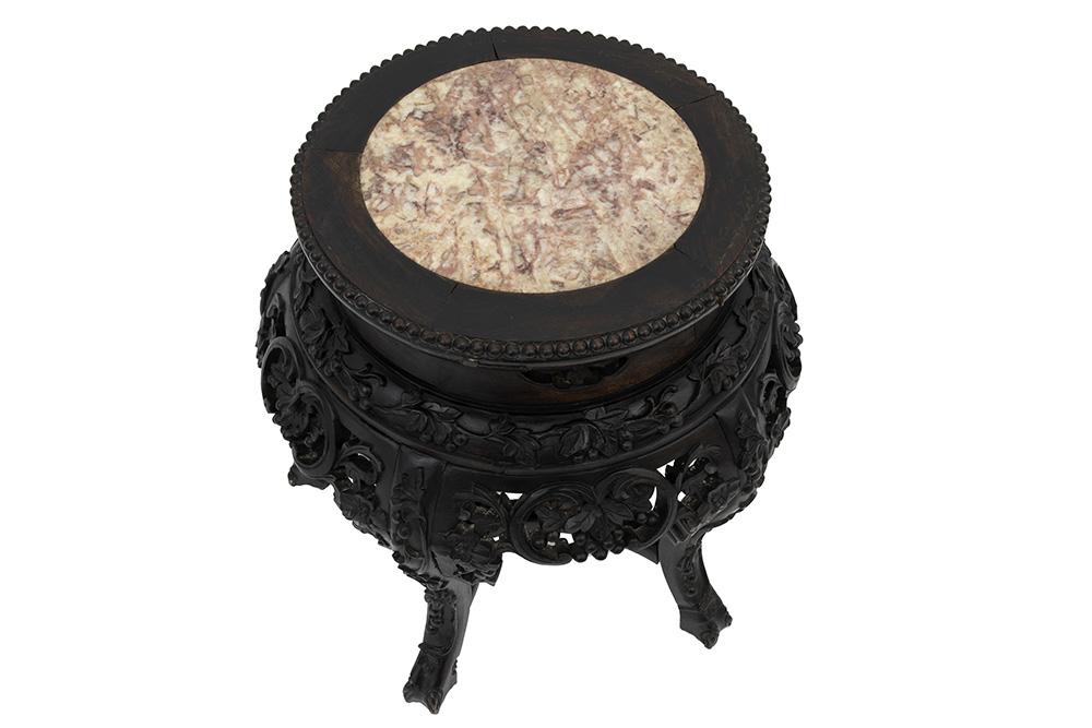 antique Chinese pedestal in carved wood with marble top