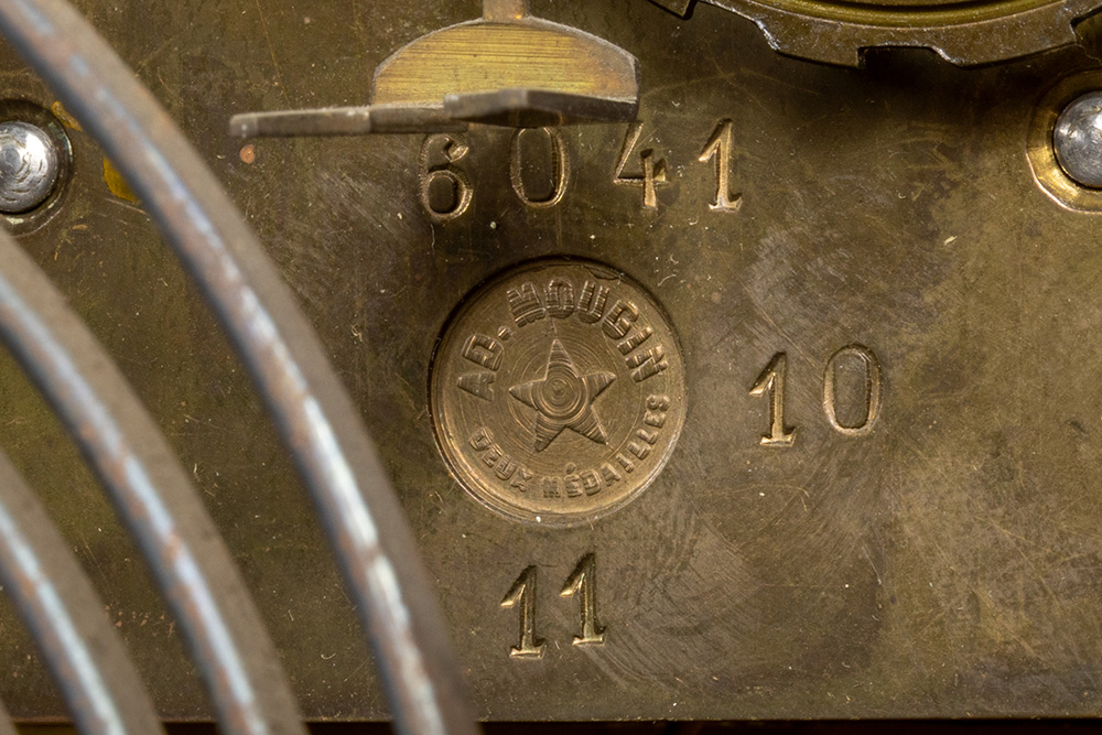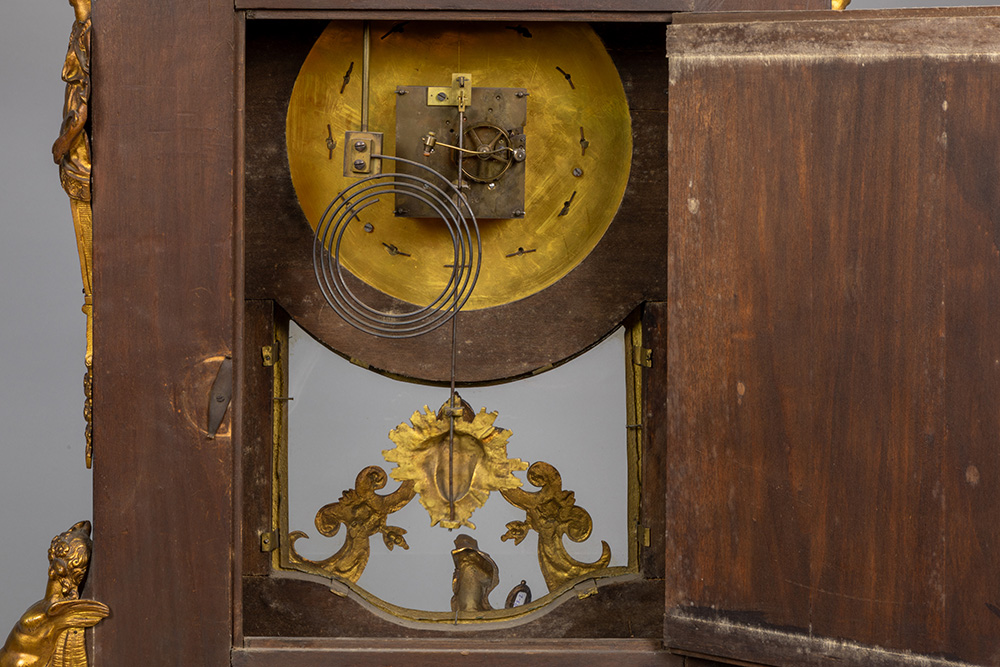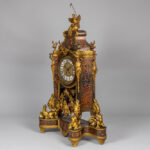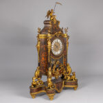 large 19th Cent. baroque style clock on its base in ‘Boulle’ with typical mountings in gilded bronze and with an “AD Mougin” marked work