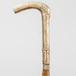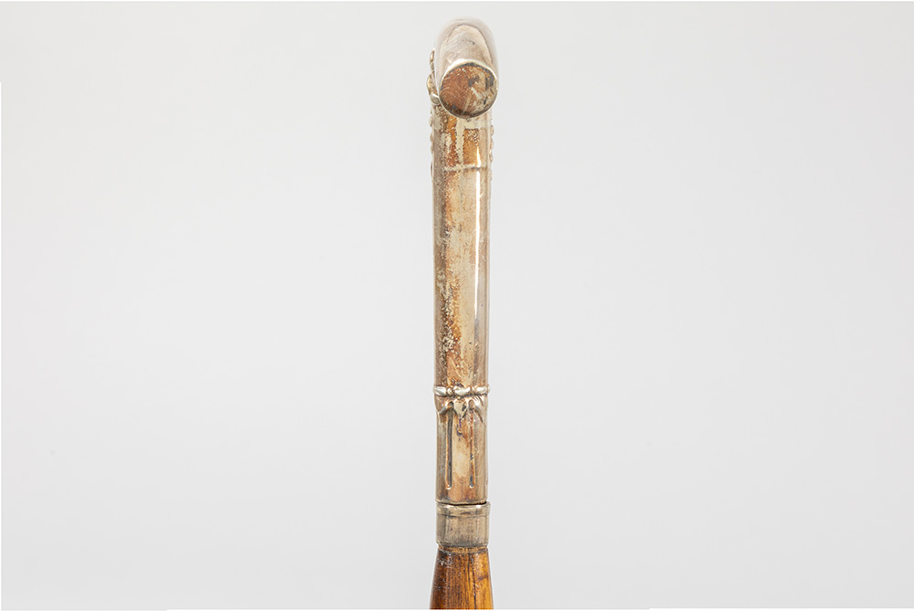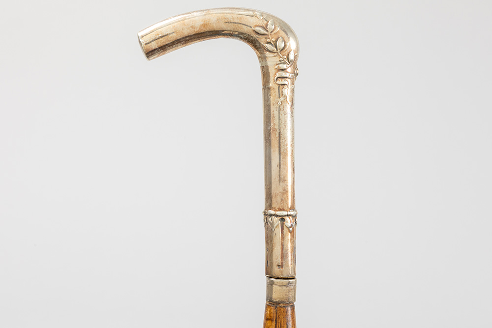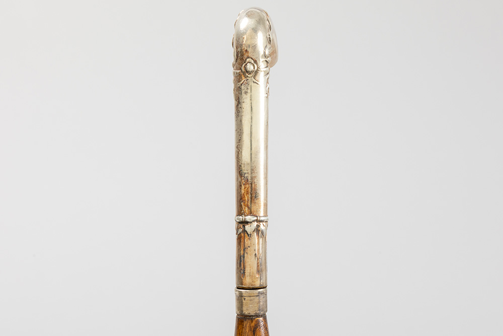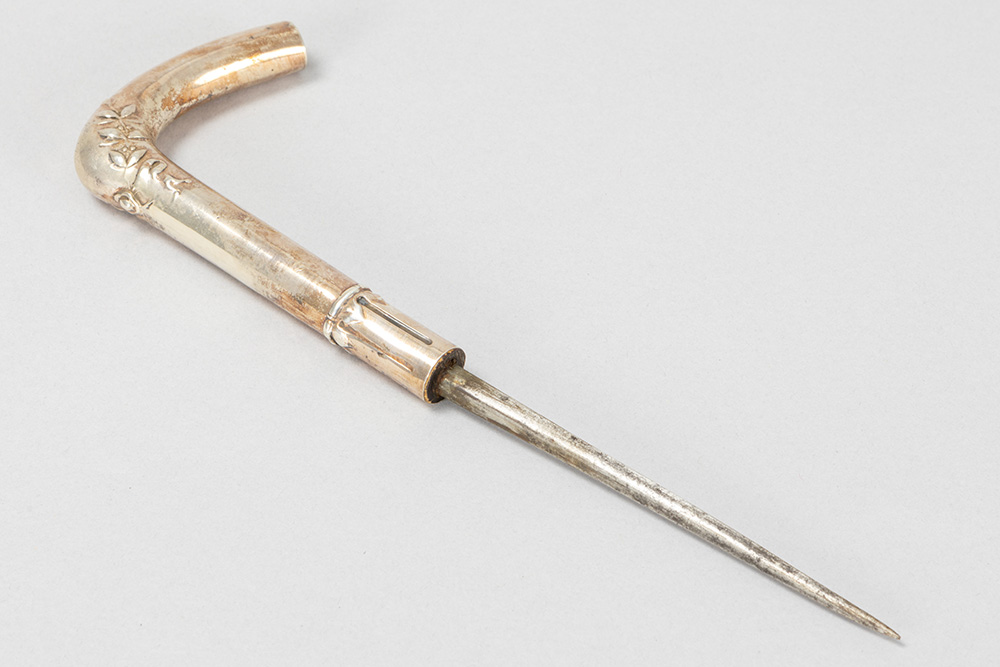 Antieke (dames)wandelstok met greep in massief zilver en met ingebouwde dolk – 79 cm hoog