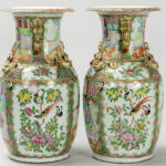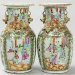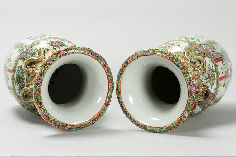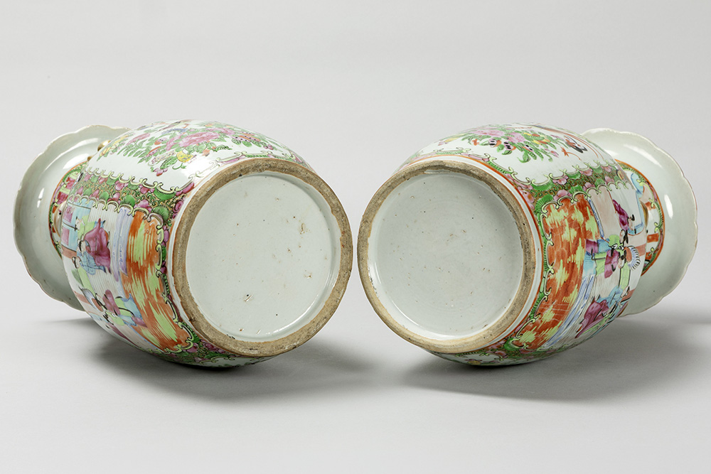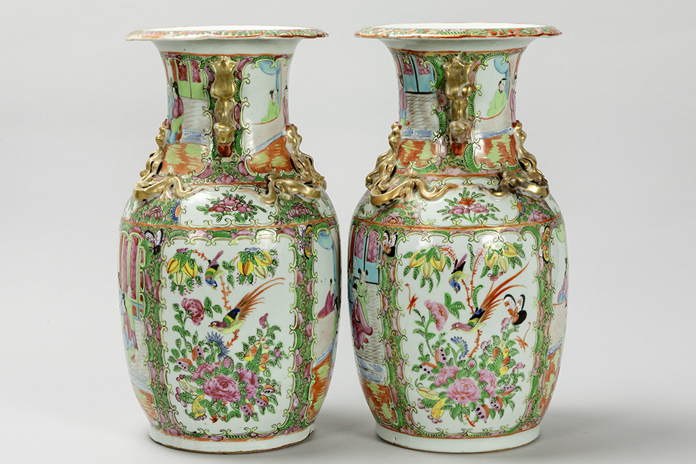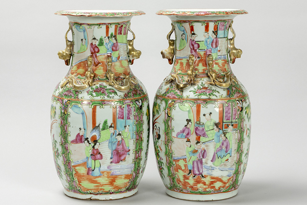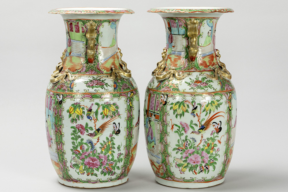 pair of antique Chinese vases in porcelain with a Cantonese decor