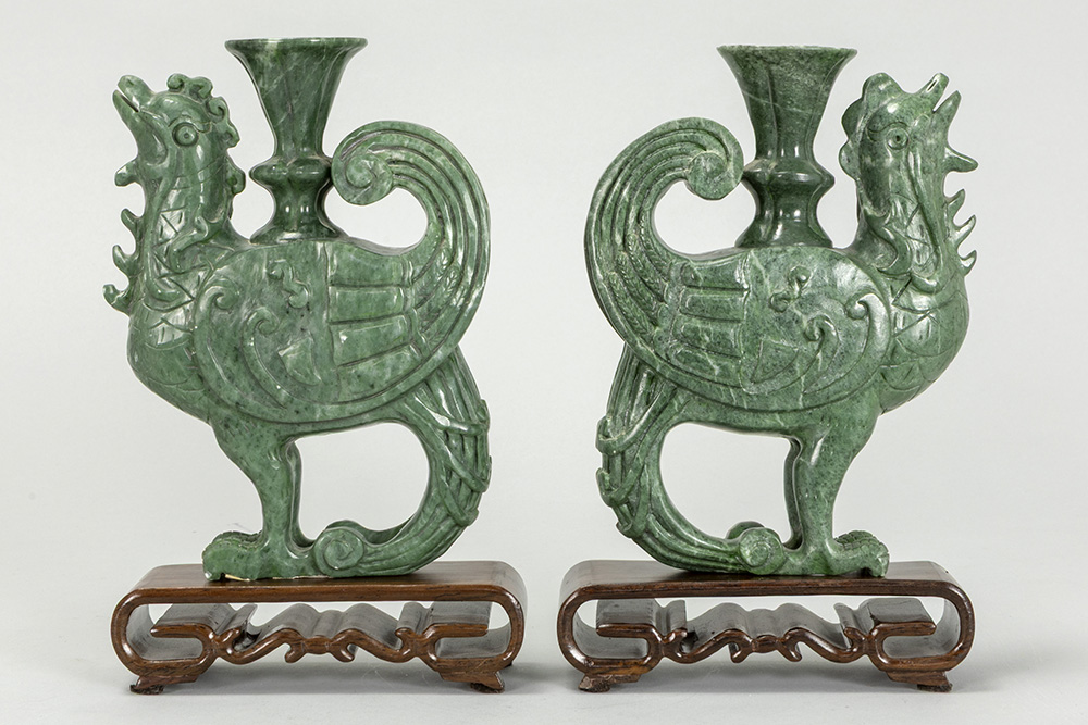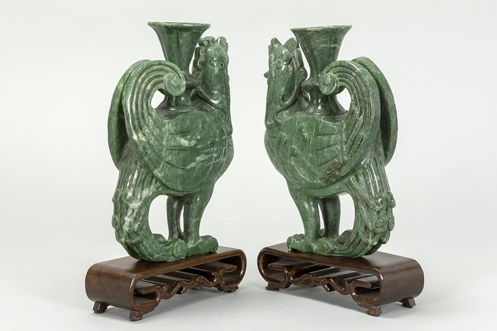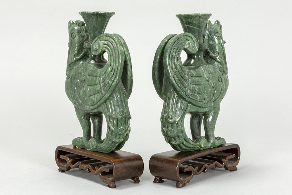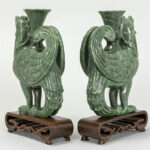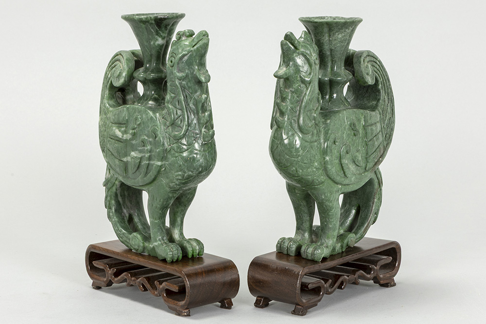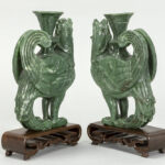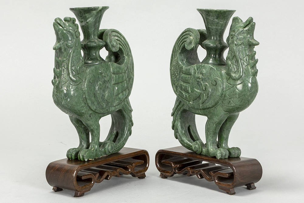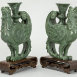 pair of Chinese Phoenix sculptures in “Honan” jade