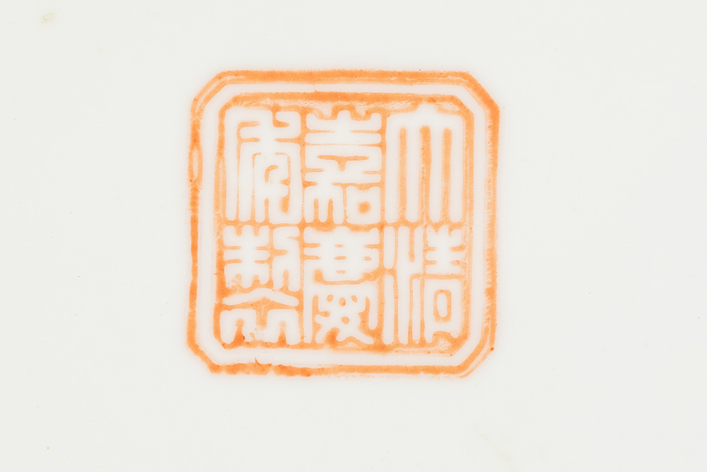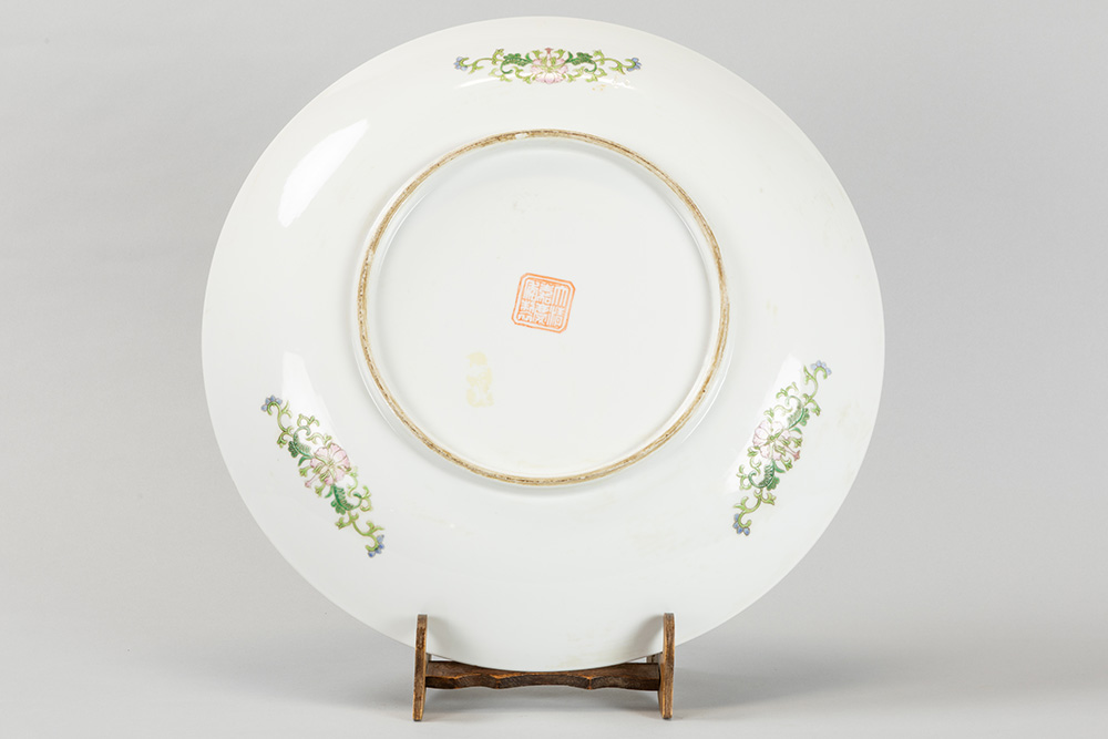 quite big round Chinese dish in marked porcelain with a polychrome decor