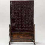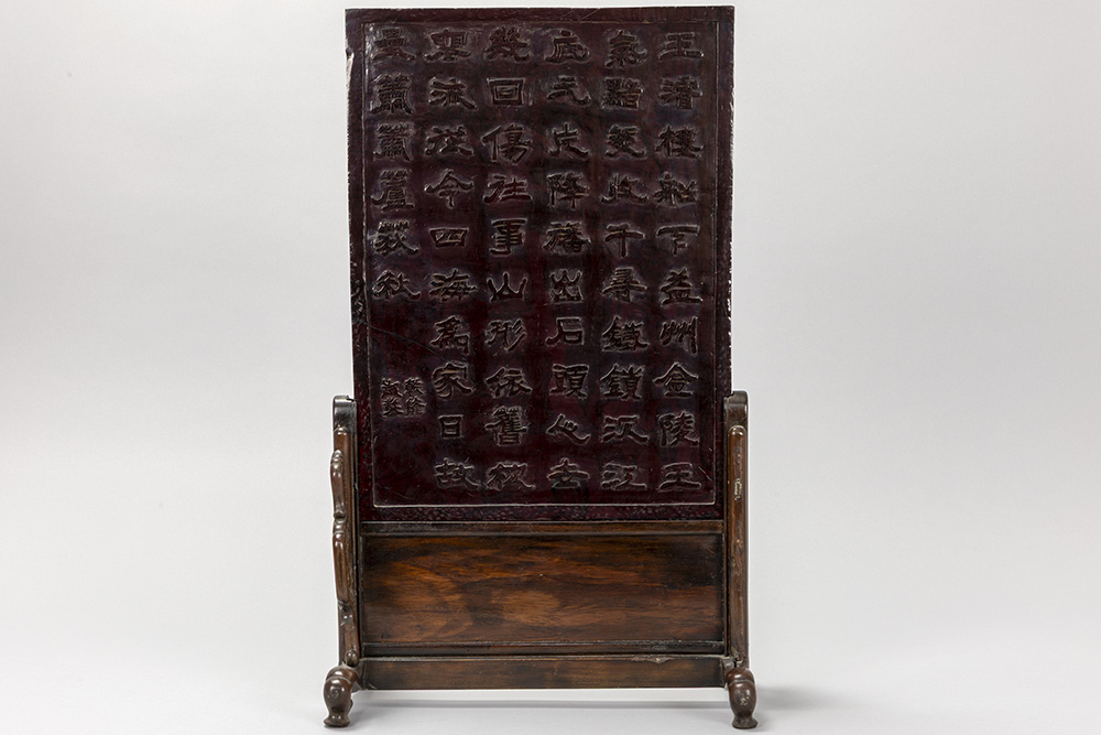 Chinese table screen with Chinese characters – in a wooden stand