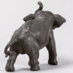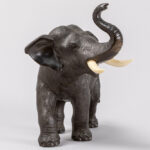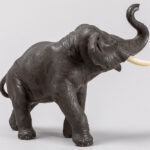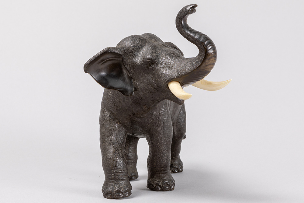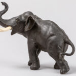 ‘Antieke’ Japanse sculptuur uit de Meiji-periode in gemerkte brons (en been) : “Olifant” – hoogte : 17,5 cm