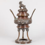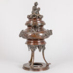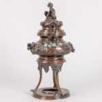 Antieke Oosterse wierookbrander in brons met draak op deksel en met drakendecor op corpus – hoogte : 37 cm