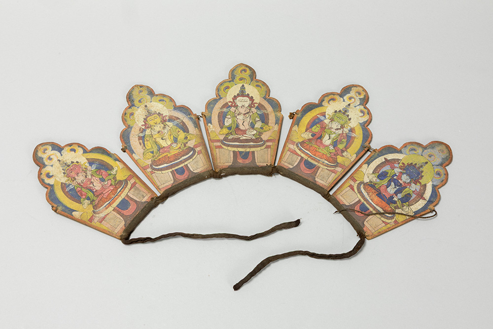 20th Cent. Tibetan head ornament/crown of a lama with the typical five painted panels