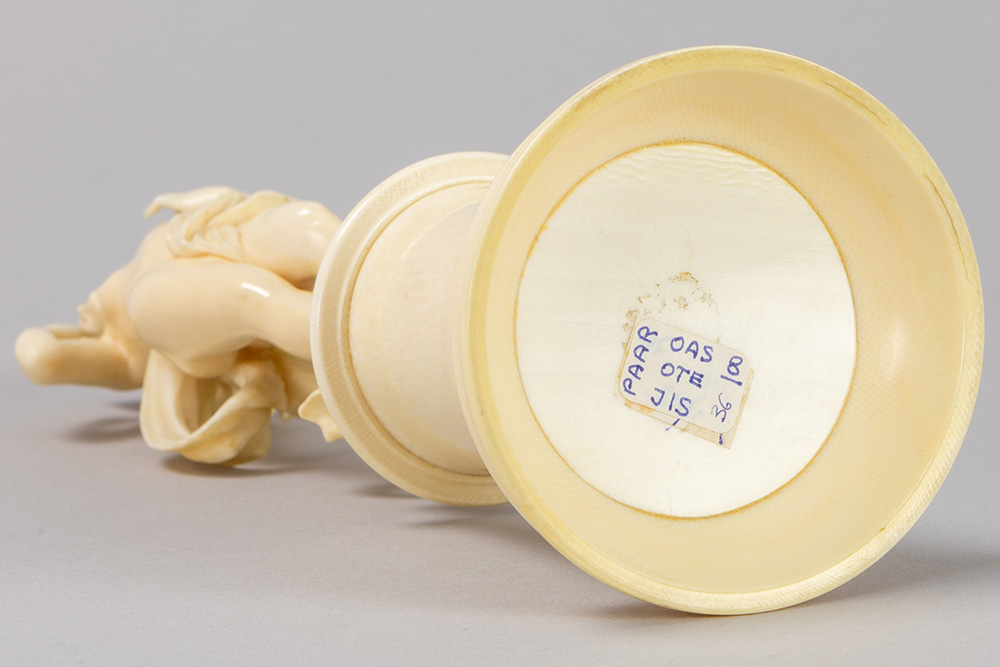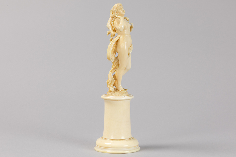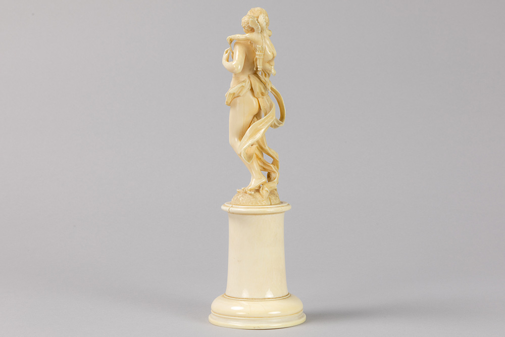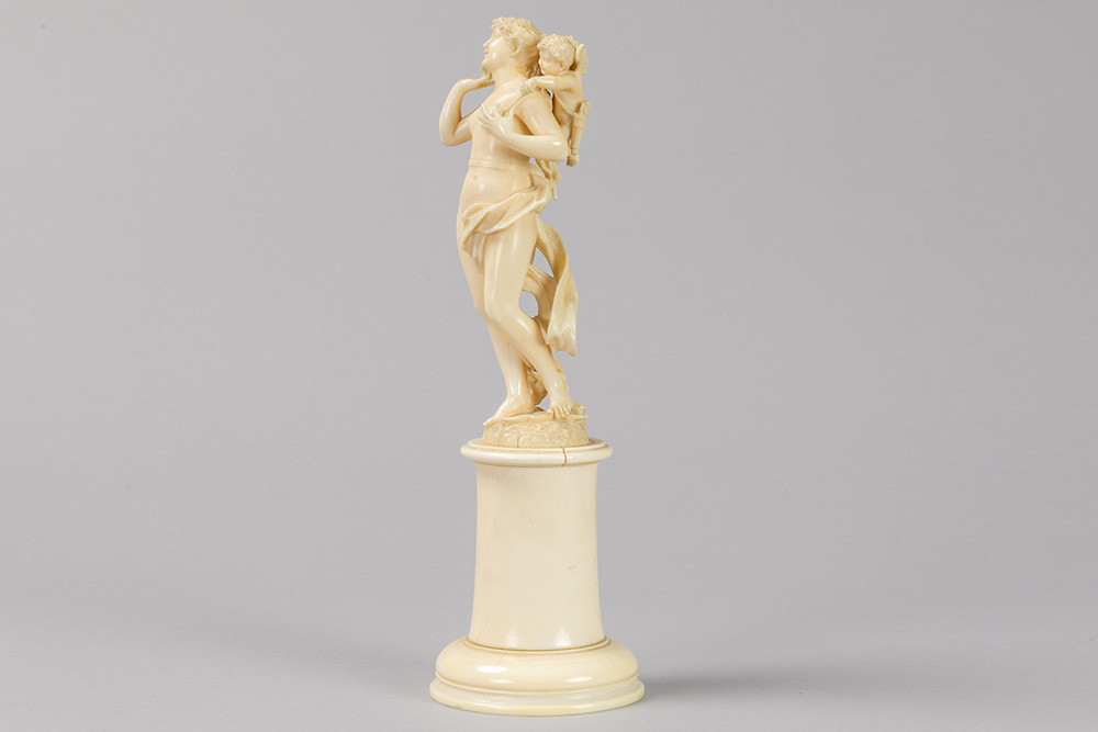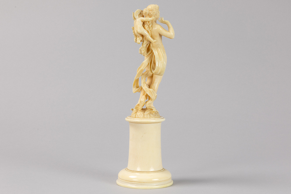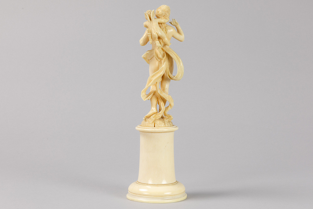 19th Cent. European, presumably French, ivory sculpture with an mythological theme (Venus and Amor) – on a ivory base