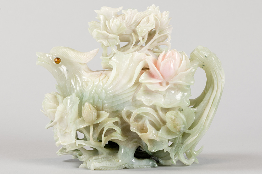 Chinese teapot with a typical Qing Duck design in a type of semi-precious stone