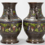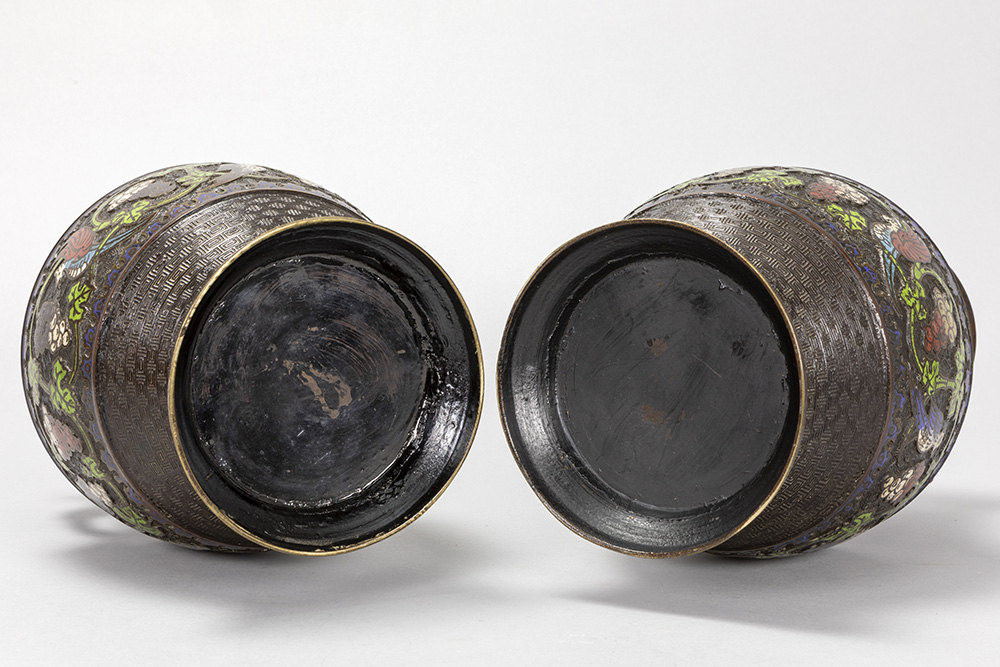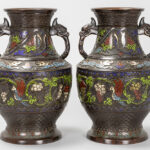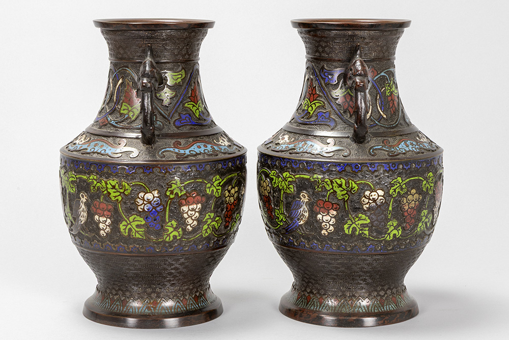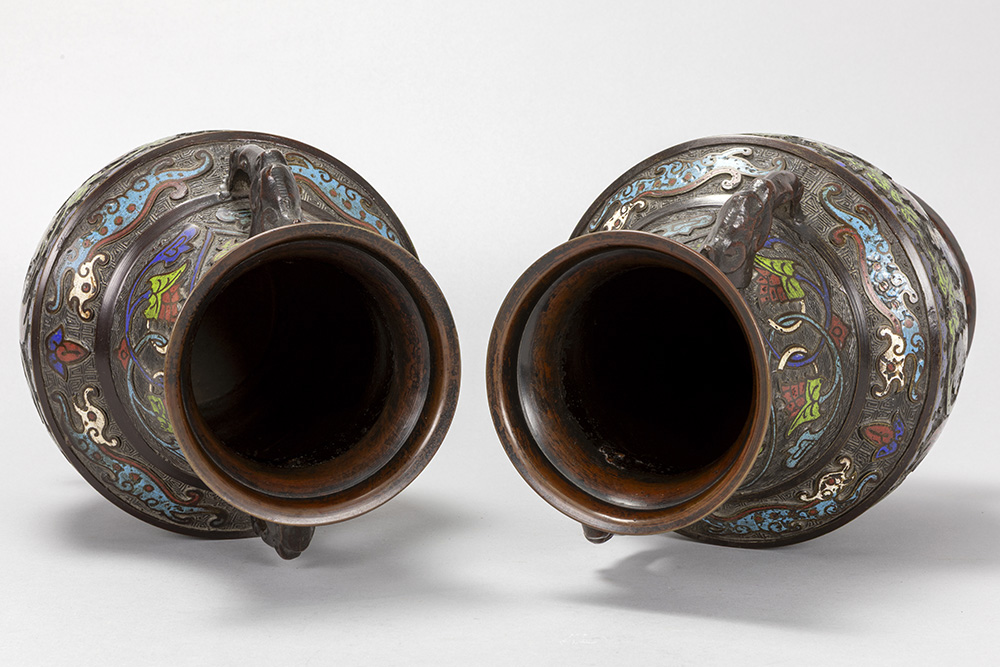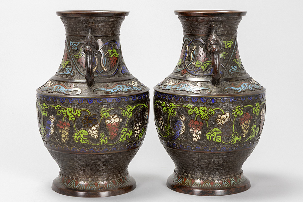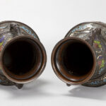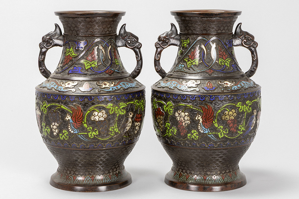 pair of antique Oriental vases in bronze and cloisonné