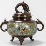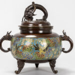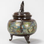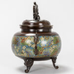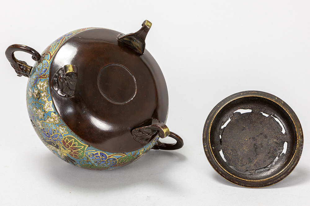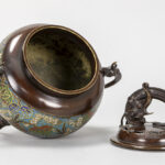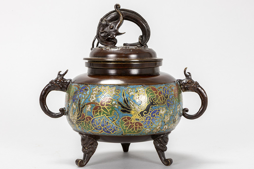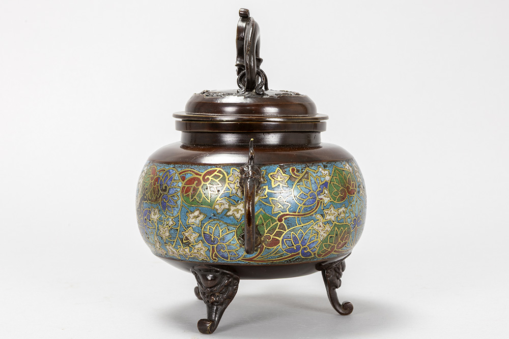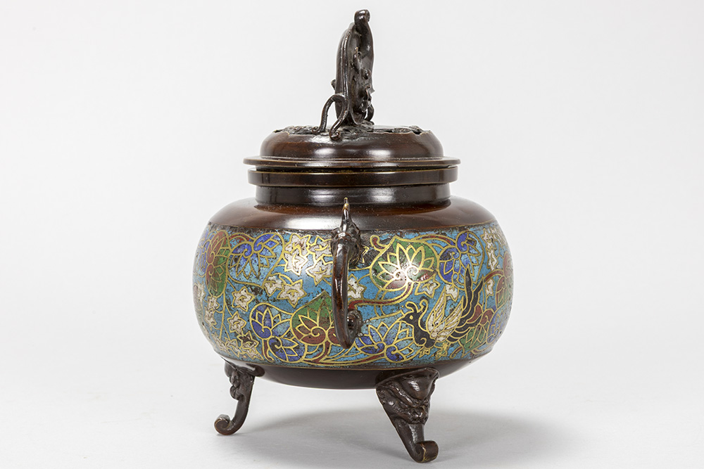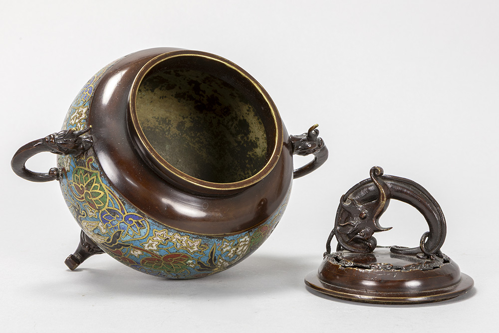 antique Japanese incense burner in bronze and cloisonné