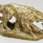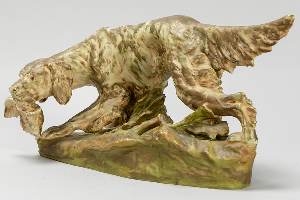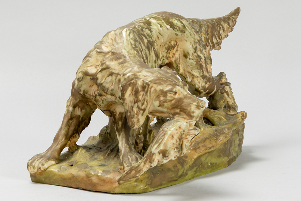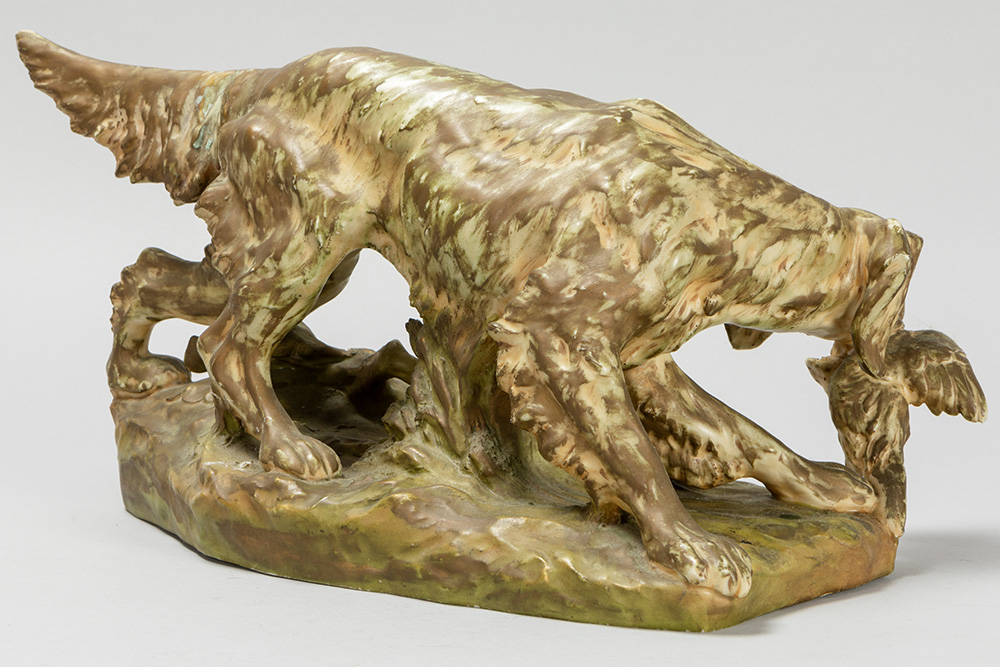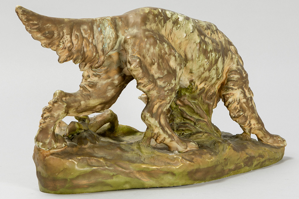 Antieke sculptuur in biscuit, gemerkt “Tsjechoslowakije” : “Hond” – 23 x 49 cm – ca 1900