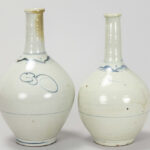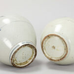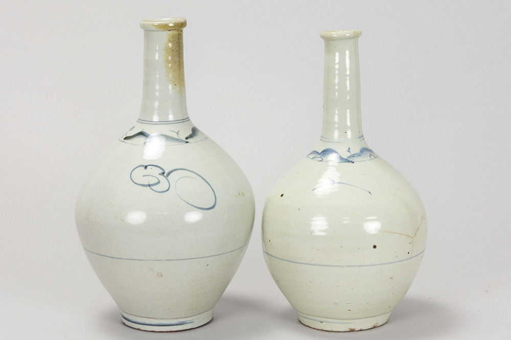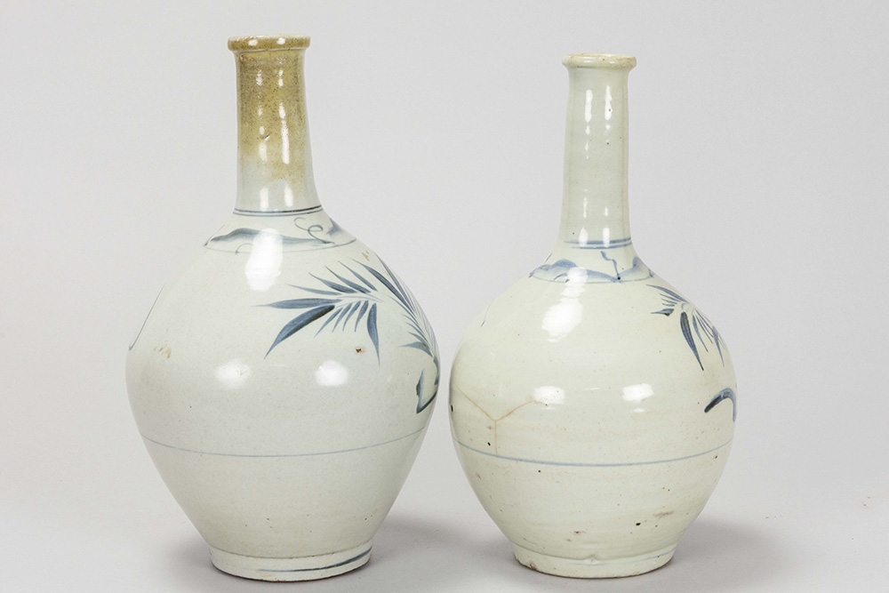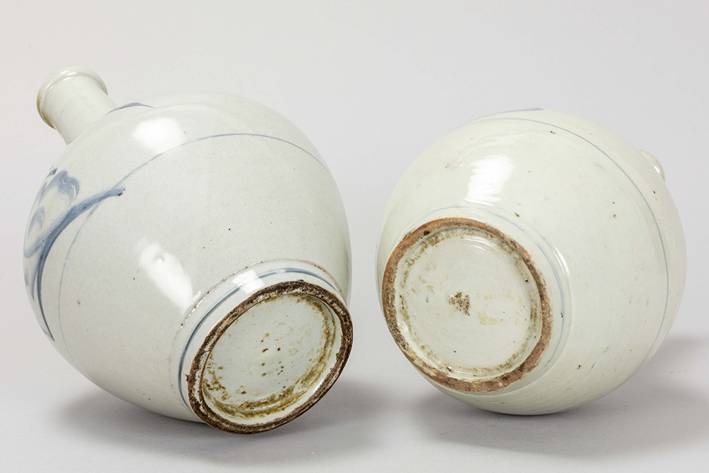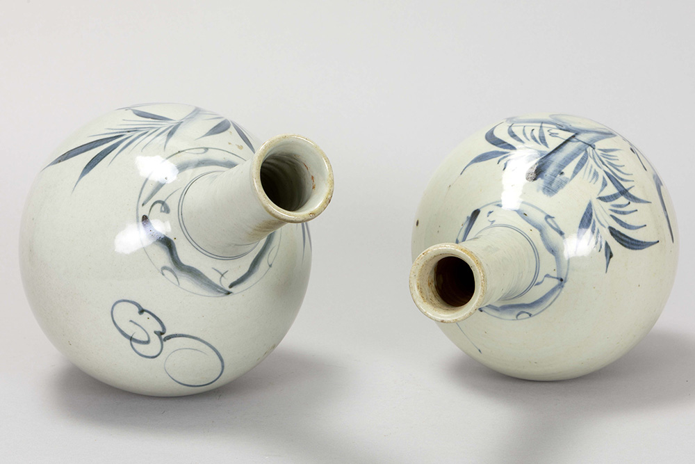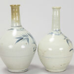 two antique oriental (Vietnamese ?) bottles in porcelain with blue-white decor