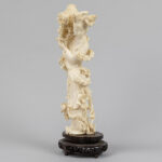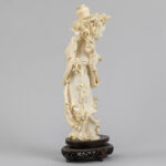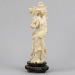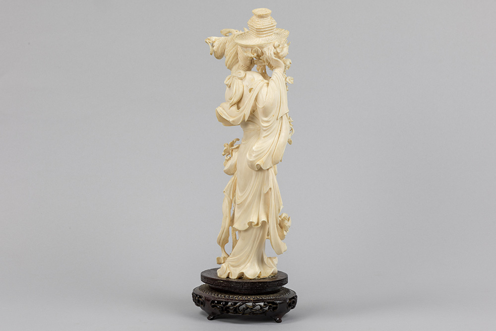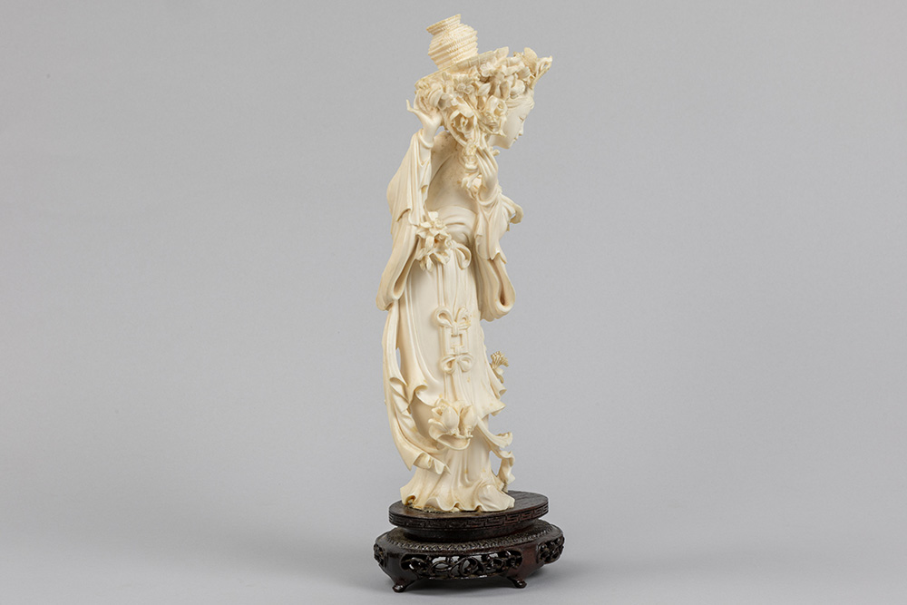 Chinese sculptuur uit de Republiek-periode in ivoor : “Dame met bloemen” – hoogte : 30 cm – ca 1930