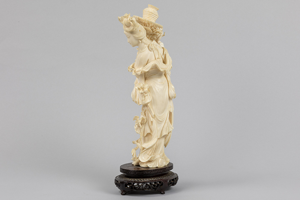 Chinese Republic period “Flower lady” sculpture in ivory