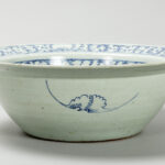 Negentiende eeuws Chinees bekken in porselein met een vegetaal blauwwit decor – diameter : 41 cm
