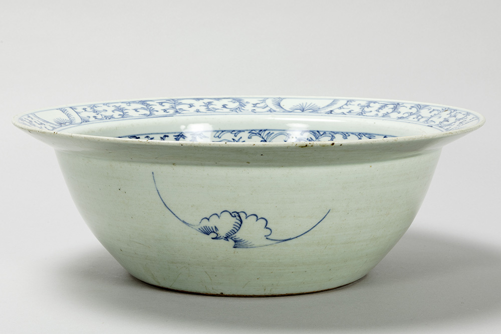 19th Cent. Chinese basin/bowl in porcelain with a vegetal blue-white decor