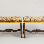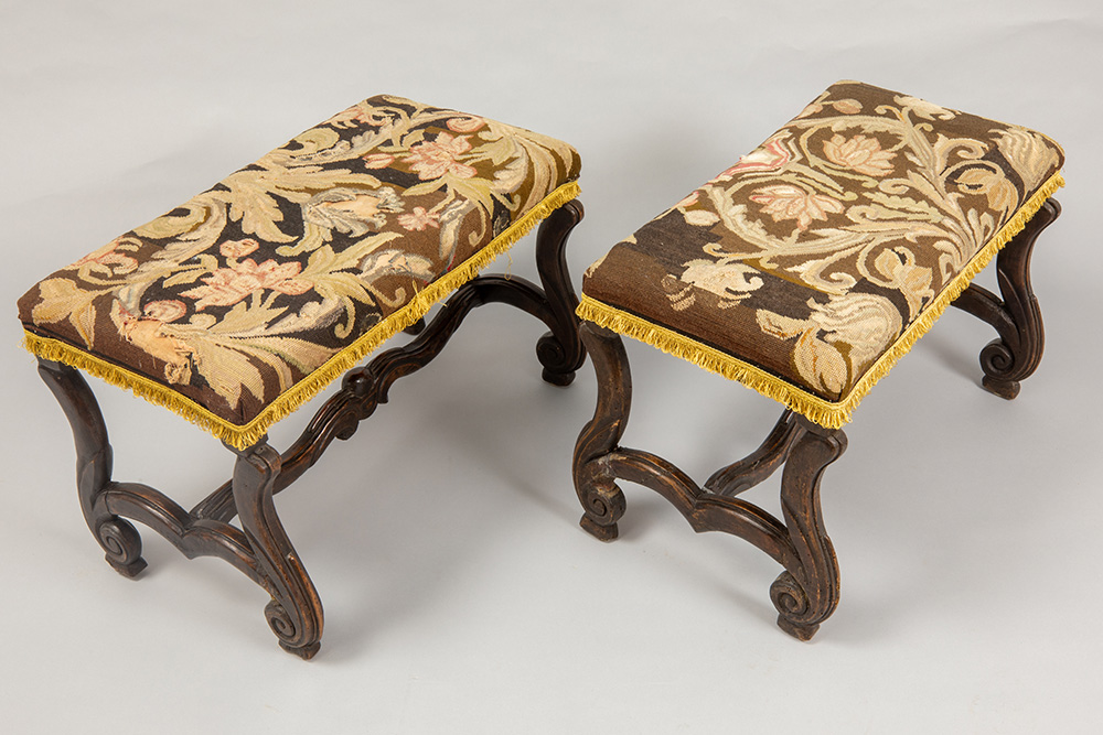 pair of 17th/18th Cent. Louis XIV stools in walnut with embroidered seat