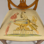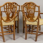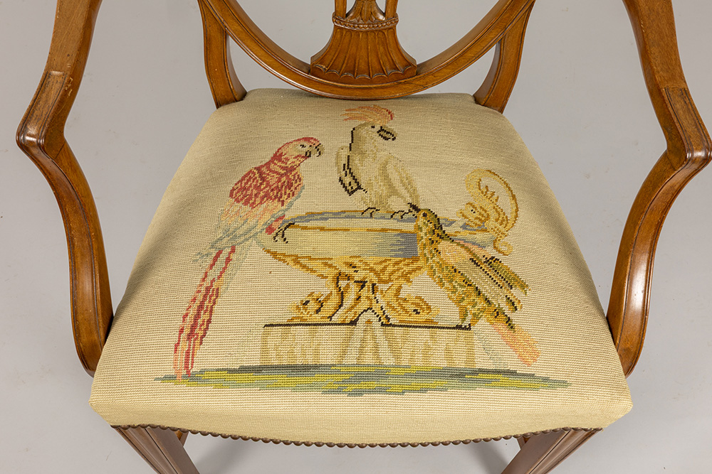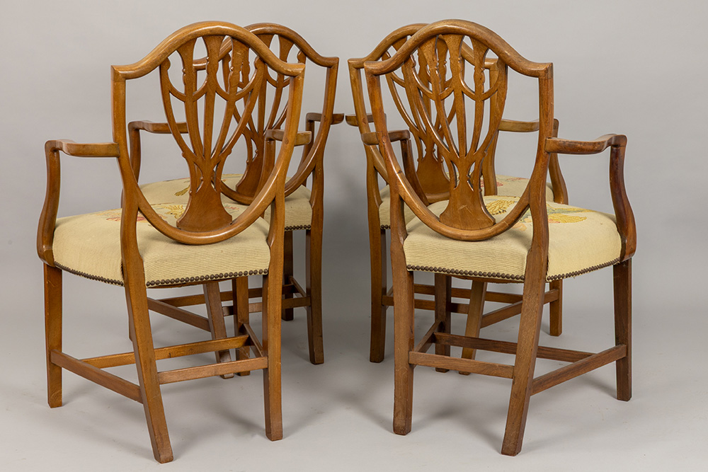 set of four English Sheraton style armchairs in fruitwood and with needlework
