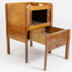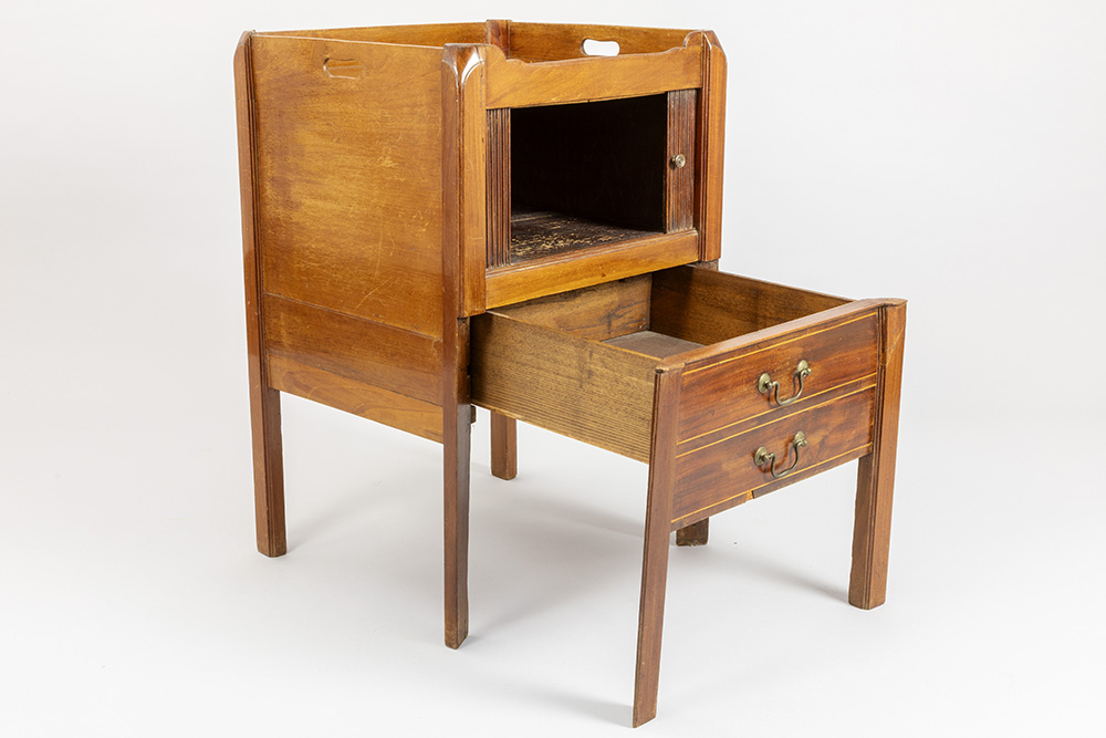 antique English bedside table with a “commode” in mahogany