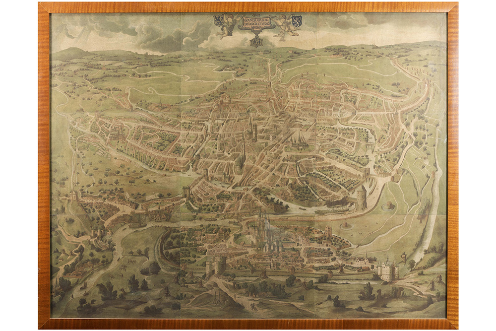 antique groundplan of Medieval Ghent, printed (lithographs) on several sheets