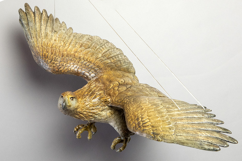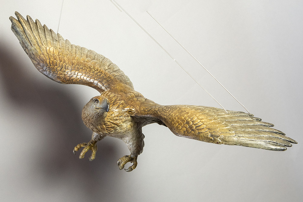BERGMANN FRANZ XAVIER (1861 – 1936) grote animalier-sculptuur in koudbeschilderde brons : “Adelaar” – breedte : 62 cm getekend ‘B’ en gemerkt ‘Geschutzt’