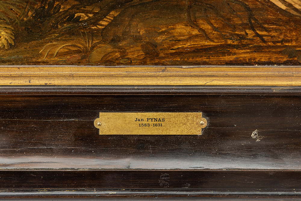 PYNAS JAN SYMONSZ. (1583/84 – 1631) olieverfschilderij op paneel : “Christus en het verhaal van de bloedvloeiende vrouw” – 57,5 x 76 opgenomen in het archief van het RKD