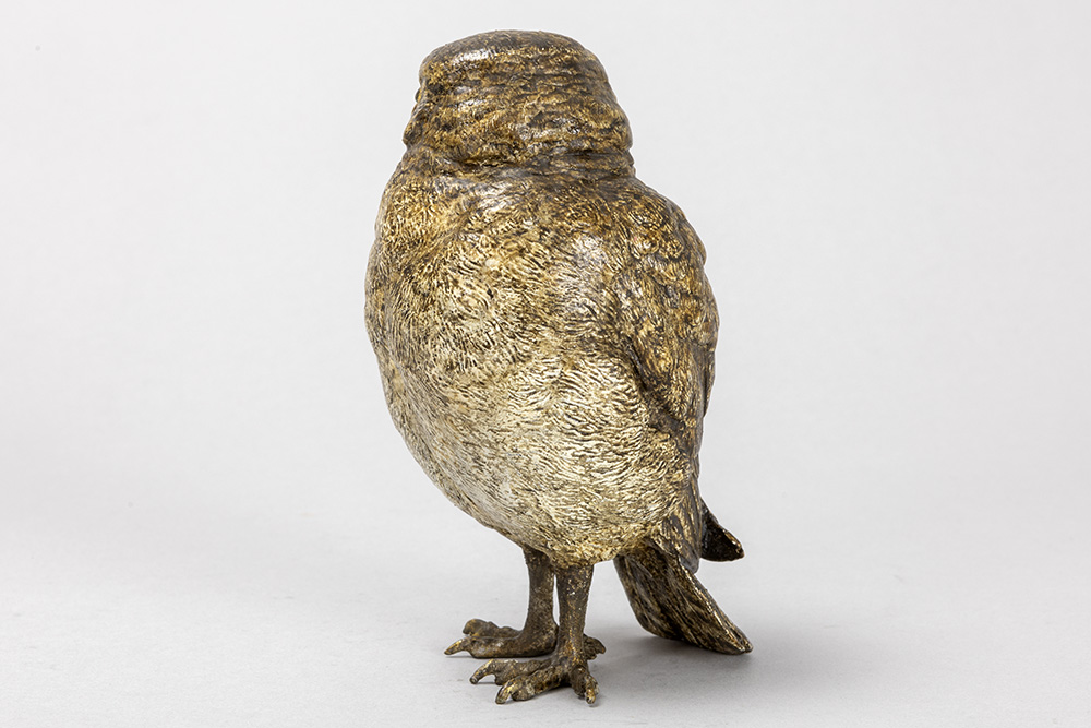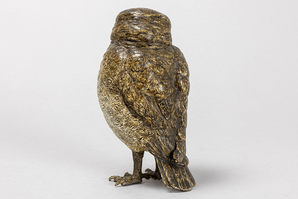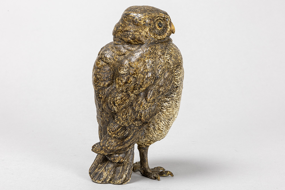 Franz Xavier Bergmann ‘B’ signed animalier “Owl” sculpture in cold-painted bronze