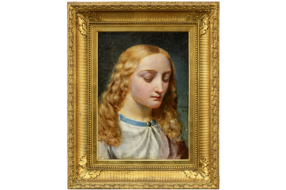 Olieverfschilderij op doek : “Ingetogen blond meisje” – 35 x 25,5 gedateerd 1861