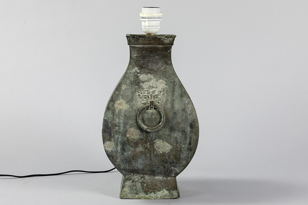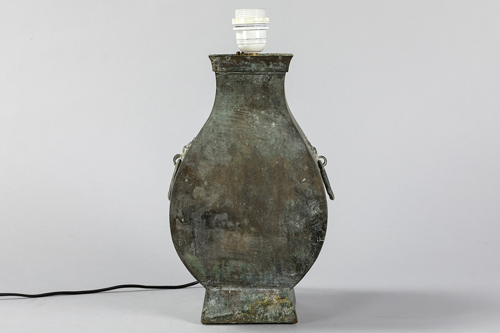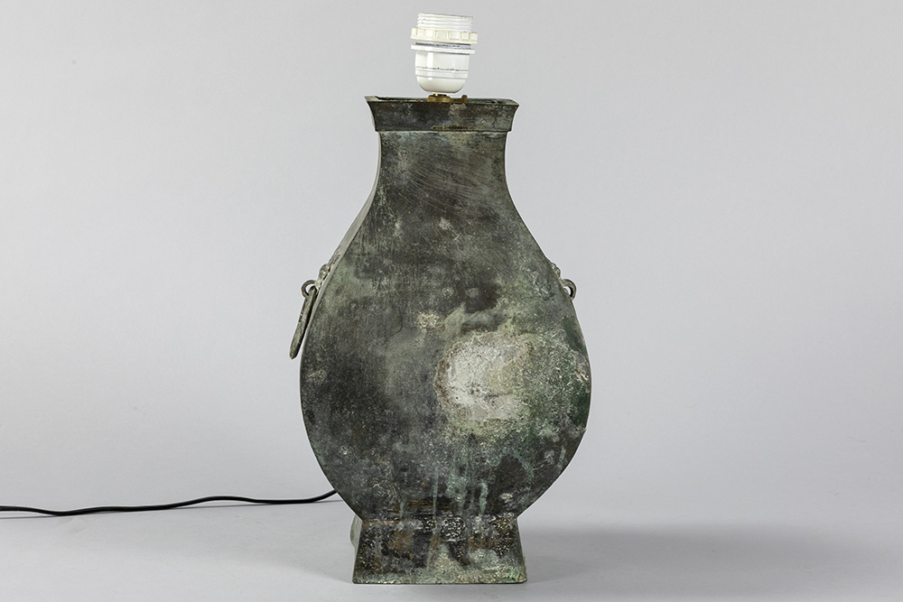 Chinese Han Dynasty “Fang vase” in bronze, made into a lamp with certificate by Axel Vervoordt